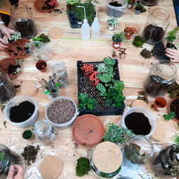Un éco-système autonome, des plantes tropicales, un micro-paysage, cet atelier permet d’appréhender les besoins et les interactions des plantes entre elles, tout en laissant libre court à son imagination.